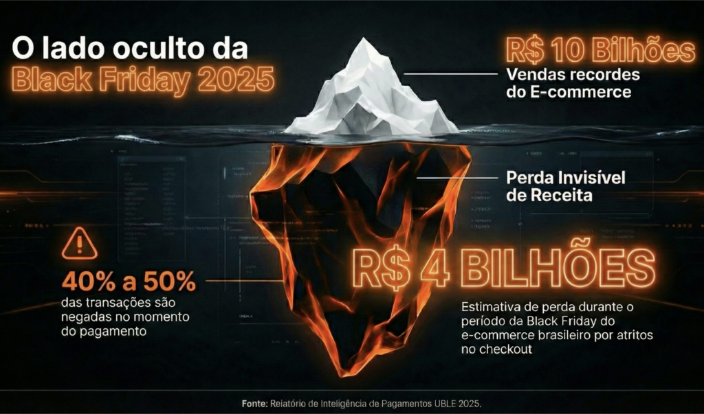 - Recordes com “Custo Invisível”: O faturamento do e-commerce na Black Friday rompeu a barreira dos R$ 10 bilhões, mas esconde um volume importante de receita represada; estima-se que a perda chegue a R$ 4 bilhões durante este período por atritos no checkout.