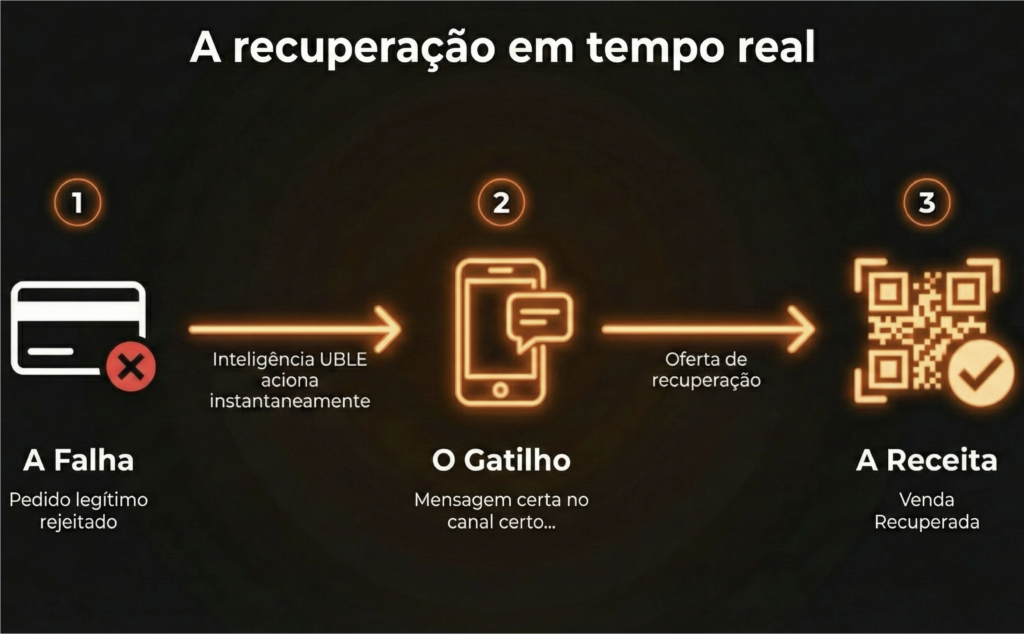 Em momentos de alta intenção de compra (“senso de oportunidade”), o consumidor responde mais rápido às interações de recuperação. A tecnologia da UBLE capitalizou essa urgência, convertendo falhas em receita instantânea.