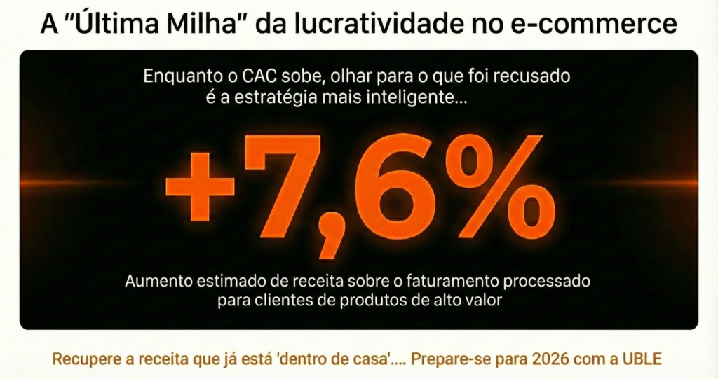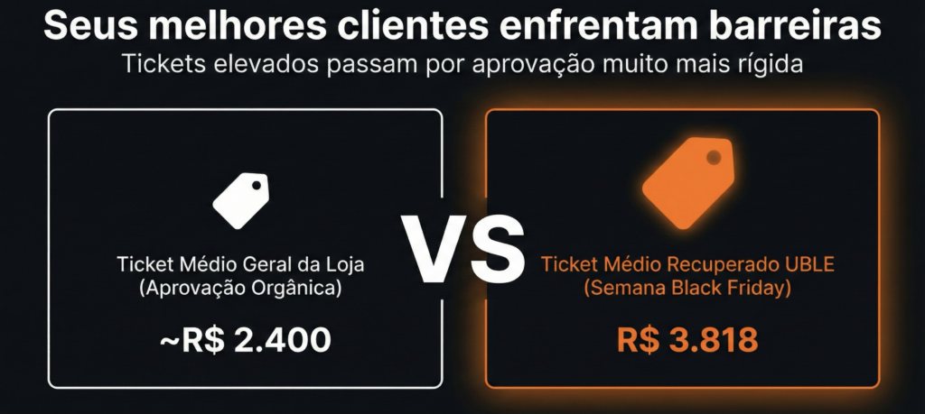 - Resgate de Tickets “VIP”: Os filtros antifraude acabam barrando desproporcionalmente compras de alto valor. A UBLE recuperou tickets médios de R$ 3.818, significativamente acima da média orgânica da loja (~R$ 2.400).